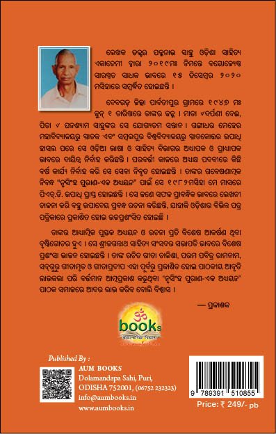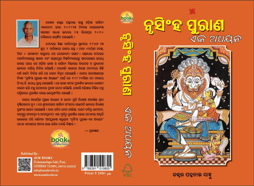 ଲେଖକ ଡକ୍ଟର ପଦ୍ମନାଭ ସାହୁ ଓଡ଼ିଶା ସାହିତ୍ୟ ଏକାଡେମୀ ଦ୍ୱାରା ୨୦୧୯ମଃ ନିମନ୍ତେ ବୟୋଜ୍ୟେଷ୍ଠ ସାରସ୍ୱତ ସାଧକ ଭାବରେ ୧୫ ଡିସେମ୍ବର ୨୦୨୦ ମସିହାରେ ସମ୍ବର୍ଦ୍ଧିତ ହୋଇଛନ୍ତି । ଦେବଗଡ଼ ଜିଲ୍ଲା ପାର୍ବତୀପୁର ଗ୍ରାମରେ ୧୯୪୭ ମଃ ଜୁନ୍ ୧ ତାରିଖରେ ତାଙ୍କର ଜନ୍ମ । ମାତା ୰ଦର୍ପଣୀ ଦେଈ, ପିତା ୰ ଘନଶ୍ୟାମ ସାହୁଙ୍କର ସେ ଯୋଗ୍ୟତମ ସନ୍ତାନ । ଗଙ୍ଗାଧର ମେହେର ମହାବିଦ୍ୟାଳୟରୁ ସ୍ନାତକ ଏବଂ ସମ୍ବଲପୁର ବିଶ୍ୱବିଦ୍ୟାଳୟରୁ ସ୍ନାତକୋତ୍ତର ଉପାଧି ହାସଲ ପରେ ସେ ଓଡ଼ିଆ ଭାଷା ଓ ସାହିତ୍ୟ ବିଭାଗର ଅଧ୍ୟାପକ ଓ ପ୍ରାଧ୍ୟାପକ ଭାବରେ ଦାୟିତ୍ୱ ନିର୍ବାହ କରିଛନ୍ତି । ପରବର୍ତ୍ତୀ କାଳରେ ଅଧ୍ୟକ୍ଷ ପଦବୀରେ କିଛି ବର୍ଷ କାର୍ଯ୍ୟ ନିର୍ବାହ କରି ସେ ସେବା ନିବୃତ ହୋଇଛନ୍ତି । ତାଙ୍କର ଗବେଷଣାତ୍ମକ ନିବନ୍ଧ “ନୃସିଂହ ପୁରାଣ-ଏକ ଅଧ୍ୟୟନ” ପାଇଁ ସେ ୧୯୮୨ମସିହା ମେ ମାସରେ ପିଏଚ୍.ଡି. ଉପାଧି ପ୍ରାପ୍ତ ହୋଇଛନ୍ତି । ସେ ଜଣେ ସଫଳ ପ୍ରାବନ୍ଧିକ ଭାବରେ ଲେଖନୀ ଚାଳନା କରି ବହୁ ଉପାଦେୟ ପ୍ରବନ୍ଧ ରଚନା କରିଛନ୍ତି, ଯାହାକି ଓଡ଼ିଶାର ବିଭିନ୍ନ ପତ୍ର ପତ୍ରିକାରେ ପ୍ରକାଶିତ ହୋଇ ଉଚ୍ଚପ୍ରଶଂସିତ ହୋଇଛି । ତାଙ୍କର ଆଧ୍ୟାତ୍ମିକ ପୁସ୍ତକ ଅଧ୍ୟୟନ ଓ ରଚନା ପ୍ରତି ବିଶେଷ ଆକର୍ଷଣ ଥିବା ଦୃଷ୍ଟିଗୋଚର ହୁଏ । ସେ ଶ୍ରୀଜଗନ୍ନାଥ ସାହିତ୍ୟ ସଂସଦର ସଭାପତି ଭାବରେ ବିଶେଷ ପ୍ରଶଂସା ଭାଜନ ହୋଇଛନ୍ତି । ତାଙ୍କ ରଚିତ ଗୀତା ଚାଳିଶା, ପରମ ପବିତ୍ର ରାମନାମ, ସଦ୍ଗୁରୁ ଗୀତାମୃତ ଓ ଗୀତାପ୍ରଦୀପ ଏହା ପୂର୍ବରୁ ପ୍ରକାଶିତ ହୋଇ ପାଠକୀୟ ଆଦୃତି ଲାଭକଲା ପରି ବର୍ତ୍ତମାନ ଆତ୍ମପ୍ରକାଶ କରୁଥିବା “ନୃସିଂହ ପୁରାଣ-ଏକ ଅଧ୍ୟୟନ” ପାଠକ ସମାଜରେ ଆଦର ଲାଭ କରିବ ବୋଲି ବିଶ୍ୱାସ । — ପ୍ରକାଶକ